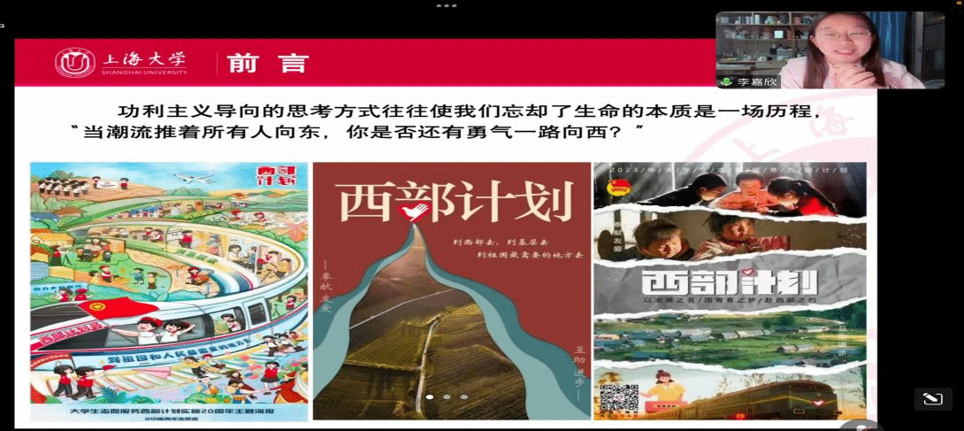 最后,李嘉欣向参与本次活动的同学们发出了参与西部计划的倡议和号召,她呼吁更多的大学生到西部去,拓展眼界和视野,提升实践能力和就业竞争力,推动西部地区的发展,塑造全面发展的人格,收获不一样的青春。