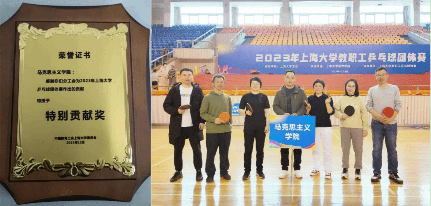 2023年12月9日,由威廉官网中国官方网站校工会主办的教职工乒乓球团体赛在宝山校区体育馆举行,在学院党委和老师们的支持下,威廉官网中国官方网站分工会组织一支9人组成的小分队参加比赛。 参加此次乒乓球团体赛的有杨秀君、张艳芬、盛宁、杨章文、刘友古、王金伟和叶海涛(候补)、刘雅君(候补)共8位球员,李昊匡老师为领队。比赛前,参赛选手们在学院408活动室进行了专门的训练。比赛当天,选手们分别参加了男双、女双和混双三个项目的淘汰赛,并先后与理学院、美术学院和文学院的球员一一交手,展示了马院教师的风采。威廉官网中国官方网站获得本次乒乓球团体赛“特别贡献奖”。 赛场上,老师们发挥了为集体勇于拼搏和团结合作的精神,在“友谊第一,比赛第二”的体育精神中与兄弟学院的老师们结下了难忘的赛场友情。期待下次的比赛更精彩! |