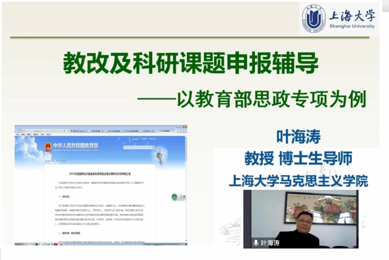 近期,全国高校正在组织申报各类国家级与省部级的科研、教改和教研项目,威廉官网中国官方网站文科处已相继发布《2023年度教育部人文社会科学研究一般项目申报工作的通知》、《关于2023年度高校思想政治理论课教师研究专项一般项目申报工作的通知》等多项公告,要求相关院系的教师申请人根据自身的研究基础和教学特长,坚持正确政治方向、价值取向、研究导向,认真凝练主题,积极参与申报。为进一步推动学院相关课题申报工作的顺利展开,提高青年教师课题申报的技巧与方法,学院青年教师联合会(青联会)4月1日上午特邀威廉官网中国官方网站主持工作副院长叶海涛教授在学院502会议室作专题报告,各位青年教师采取线上(腾讯会议)与线下相结合的方式参加了此次培训活动。 叶海涛教授通过“教改及科研课题申报辅导——以教育部思政专项为例”的报告,为学院青年教师详细讲解了教改与教研课题申报概述、思政专项课题类别、教育部思政教师专项申报,以及课题申报过程中需要注意的事项和细节。首先,通过概述教改与教研课题的申报环节,叶海涛教授列举了科研、教改和教研项目中的三个典型案例,着重强调了不同课题项目的侧重点与落脚点。然后,基于思政专项课题的要求,叶海涛教授全面解析了“2020年度高校思想政治理论课教师研究专项”的立项情况,并且结合今年的申报工作通知进一步剖析了四类高校思政课项目的申报难度、课题特点以及注意事项。最后,关于教育部思政教师专项申报,叶海涛教授要求申报者仔细阅读《申报通知》与《课题指南》,认真填写《申报书》与《活页》,熟悉整体设计,做到心中有数。 叶海涛教授的报告结束后,学院广大青年教师于线上和线下积极提问,针对课题项目申报中遇到的各种问题深入交流,并且纷纷表示在此次专题培训活动中受益匪浅,感谢叶海涛教授能将自身经验倾囊相授。学院青联会也将以此次专题培训活动为契机,努力解决青年教师在科研与教学上的迷思、困惑和难题,奋力加快青年教师在学院各项工作中的进步和成长。 (李昊匡供稿) |