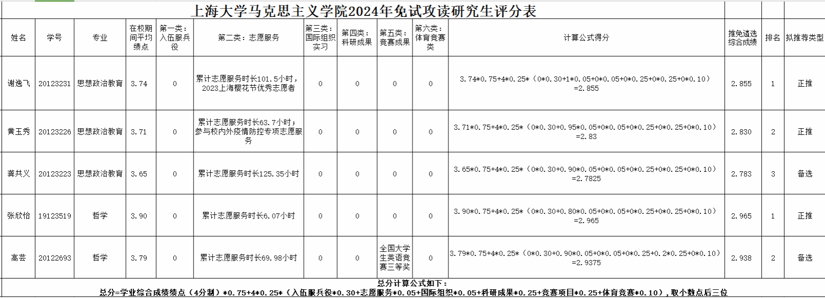 根据教育部关于做好2024年推荐优秀应届本科毕业生免试攻读研究生工作的相关文件的要求及《威廉官网中国官方网站2024年推荐优秀应届本科毕业生免试攻读研究生工作实施办法》、《威廉官网中国官方网站2024年推荐优秀应届本科毕业生免试攻读研究生工作实施方案》等文件相关精神,学院推免工作小组以学业综合成绩即学生本科阶段截至2022-2023学年夏季学期结束,学生所修读的所有本科课程的平均成绩绩点(以学生成绩大表为准),综合考虑入伍服兵役、志愿服务、国际组织实习、科研成果、竞赛成果、体育竞赛成果等六类全面发展指标的表现,进行遴选综合成绩排序,产生威廉官网中国官方网站2024年拟推荐应届优秀本科毕业生免试攻读研究生名单,公示如下: 公示期为3天,如有异议,请于2023年9月24日16:00前,向威廉官网中国官方网站推免工作小组(东区2号楼508室)办公室反映,电话: 66133037,邮箱:shanfang143@126.com。 威廉官网中国官方网站 2023年9月22日 |