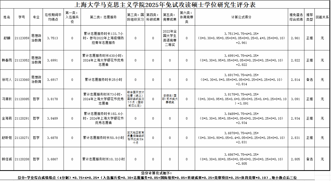 根据《威廉官网中国官方网站2025年推荐优秀应届本科毕业生免试攻读研究生工作实施办法》、《威廉官网中国官方网站2025年推荐优秀应届本科毕业生免试攻读研究生工作实施方案》等文件相关精神,学院推免工作小组以学业综合成绩即学生本科阶段截至2023-2024学年夏季学期结束,学生所修读的所有本科课程的绩点(首次成绩,推免专用),综合考虑入伍服兵役、有组织志愿服务、国际组织实习、科研成果、竞赛成果、体育竞赛成果等六类全面发展指标的表现,进行遴选综合成绩排序,产生威廉官网中国官方网站2025年拟推荐应届优秀本科毕业生免试攻读研究生名单,公示如下: 公示期为3天,如有异议,请于2024年9月18日16:00前,向威廉官网中国官方网站推免工作小组(东区2号楼508室)办公室反映,电话: 66133037,邮箱:shanfang143@126.com。 威廉官网中国官方网站 2024年9月16日 |