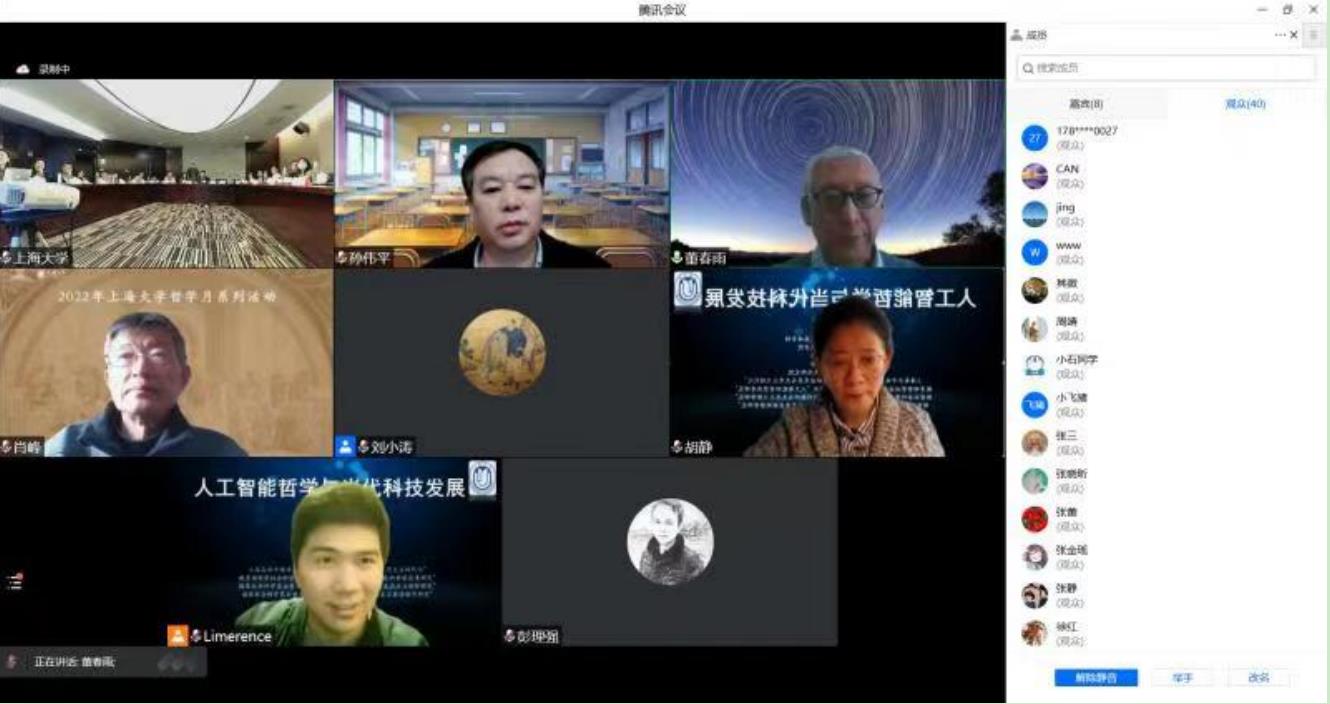 2022年11月5日至6日,“人工智能哲学与当代科技发展”会议在衡山北郊宾馆宝山厅举行。此次会议由威廉官网中国官方网站马克思主义理论高峰学科、威廉官网中国官方网站、威廉官网中国官方网站哲学系、上海市逻辑学会、威廉官网中国官方网站智能哲学与文化研究院、教育部哲学社会科学研究重大课题攻关项目“人工智能的哲学思考研究”、国家社会科学基金重大项目“人工智能前沿问题的马克思主义哲学研究”、国家社会科学基金重大项目“负责任的人工智能及其实践的哲学研究”、上海高水平地方高校创新团队“智能社会及其马克思主义时代化”联合主办。为积极配合防疫政策,会议采用线上与线下结合的方式举行。