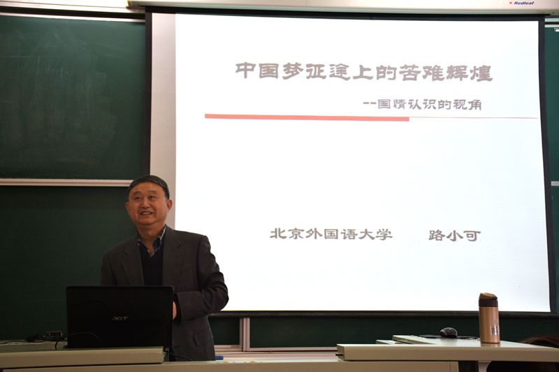 为了开拓了教师的学术研究视野,提高了思政课课堂教学效果,2017年2月24日下午7-9节课,AJ107教室,北京外国语大学路小可老师作为"项链模式"特邀嘉宾做客"第二十五期教学论坛",为师生们呈上了一堂以"中国梦"为主题的精彩课程。 路老师以孙中山的"振兴中国"为引,通过大量事例说明个人前途和尊严是与国家命运紧密相连的。他引导学生追溯近百年来中华民族曲折的复兴历程,让学生领悟到中国梦不是一个空洞的口号,而是凝结着无数仁人志士的不懈努力,承载着全体中华儿女的共同向往,昭示着国家富强、民族振兴、人民幸福的美好前景。 路老师的讲授激起了学生强烈的爱国热情和历史担当感,纷纷感言要使中国变得更加富强,更加文明,中国人更受尊重,中华民族为世界和平发展与人类进步做出更大贡献,每个青年学子们都应该更加奋发图强,严于律己,为实现中国梦贡献自己的力量。(申小翠供稿 王金伟编辑) |