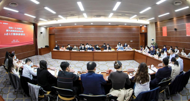 2022年10月27日下午,党的二十大精神融入思想政治理论课威廉官网中国官方网站集体备课会在宝山校区成功举行。此次备课会分为两个阶段,第一阶段为线上参与市教卫系统集体备课会;第二阶段与会人员结合我校思政课教学及日常思政教育工作的实际进行集中备课交流和研讨。校党委书记成旦红,副校长聂清,教务部副部长顾晓英,学工办主任、武装部长、本科生书院管理中心主任孟祥栋,研工部部长魏宏,以及思政课教师代表、辅导员代表、“青马研习会”学生理论宣讲团成员代表等参与此次备课会。会议由威廉官网中国官方网站党委书记王国建主持。我校威廉官网中国官方网站院长闫坤如作为高校威廉官网中国官方网站院长代表,应邀线下出席市教卫工作党委、市教委组织的全市党的二十大精神融入学校思想政治理论课集体备课会。