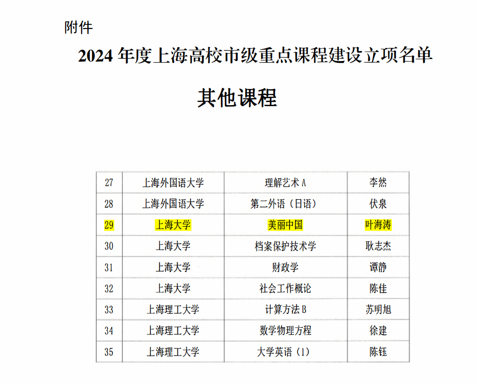 近日,上海市教委发布了《上海市教育委员会关于公布2024年度上海高校市级重点课程立项名单的通知》(沪教委高【2024】38号),由威廉官网叶海涛教授担任课程负责人的“美丽中国”课程喜获上海高校市级重点课程立项。 课程简介: “美丽中国”是一门面向全校各专业学生开设的通识课程。本课程从生态学、政治学、经济学、社会学、哲学、环境工程等学科视角,对生态文明建设理论与实践进行跨学科解读、讲授与研讨。系统讲授“美丽中国”思想的缘起与形成、历史与现实、理论与逻辑、核心要义与价值追求、理论价值与实践意义等;以习近平生态文明思想为指导,着力培育大学生生态价值观,引导学生树立敬畏自然、尊重自然、顺应自然、保护自然的生态文明意识,使学生深入了解美丽中国建设中的中国智慧、中国制度和中国力量,从而自觉将美丽中国思想内化于心、外化于行,在建设美丽中国中贡献青春力量。 上海市级重点课程立项是上海市高等教育质量提升工程的重要组成部分,以课程改革“小切口”带动解决人才培养模式“大问题”,推动课堂教学改革。旨在通过项目引领,深入推动课堂教学创新性改革,提升人才自主培养质量。 |