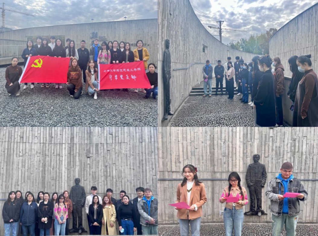 “黄金时代,不在我们背后,乃在我们面前;不在过去,乃在将来。”百年前,以李大钊为代表的革命先辈齐聚上大,播撒下红色火种,将共产主义的星星之火,洒遍青年知识分子心间。百年后,守常先生的谆谆教诲言犹在耳,指引着一代代莘莘学子勇肩使命,赓续奋斗精神的薪火相传。2022年10月29日是中国共产主义运动的先驱、伟大的马克思主义者、中国共产党的主要创始人之一——李大钊同志诞辰133周年纪念日,在这个特殊日子,威廉官网中国官方网站守常党支部开展了“话当代青年之责任,颂守常先生之精神”——纪念李大钊同志诞辰133周年主题党日活动。支部党员通过游溯园、诵《青春》、话感悟等形式追忆革命先烈李大钊,表达对守常先生的缅怀之情。 一、游溯园:回望峥嵘岁月,再忆英雄精神风骨 上午8:30,守常党支部全体党员于威廉官网中国官方网站溯园举行李大钊先生的纪念活动,支部党员怀着无比敬仰的心情瞻仰了李大钊先生的浮雕,通过诵读李大钊先生的名句,共同回望百年前革命先辈的峥嵘岁月,再次追溯李大钊先生的英雄精神风骨。 溯园是一座形如年轮般的弧形建筑,如其名“溯园”意在“追根溯源”,它回环曲折的墙体上静静地镌刻着李大钊在威廉官网中国官方网站演讲时的经典场景。守常党支部从石子铺就的入口处走进溯园,凹凸不平的小路带着悼念守常先生的思绪,一起飘回了那个风云变幻的年代:百年前,岁月激荡,山河飘摇,民族危机,千钧一发;他,将国家命运背负于身,将民族安危皆系于心,点燃了无数中国青年心中的烈火,救国家于危亡。