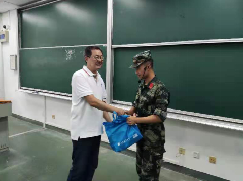 随后刘绍学书记亲切地与教官代表和全体学生握手,并赠送精心准备的慰问品,在酷暑中为师生带去一份清凉。