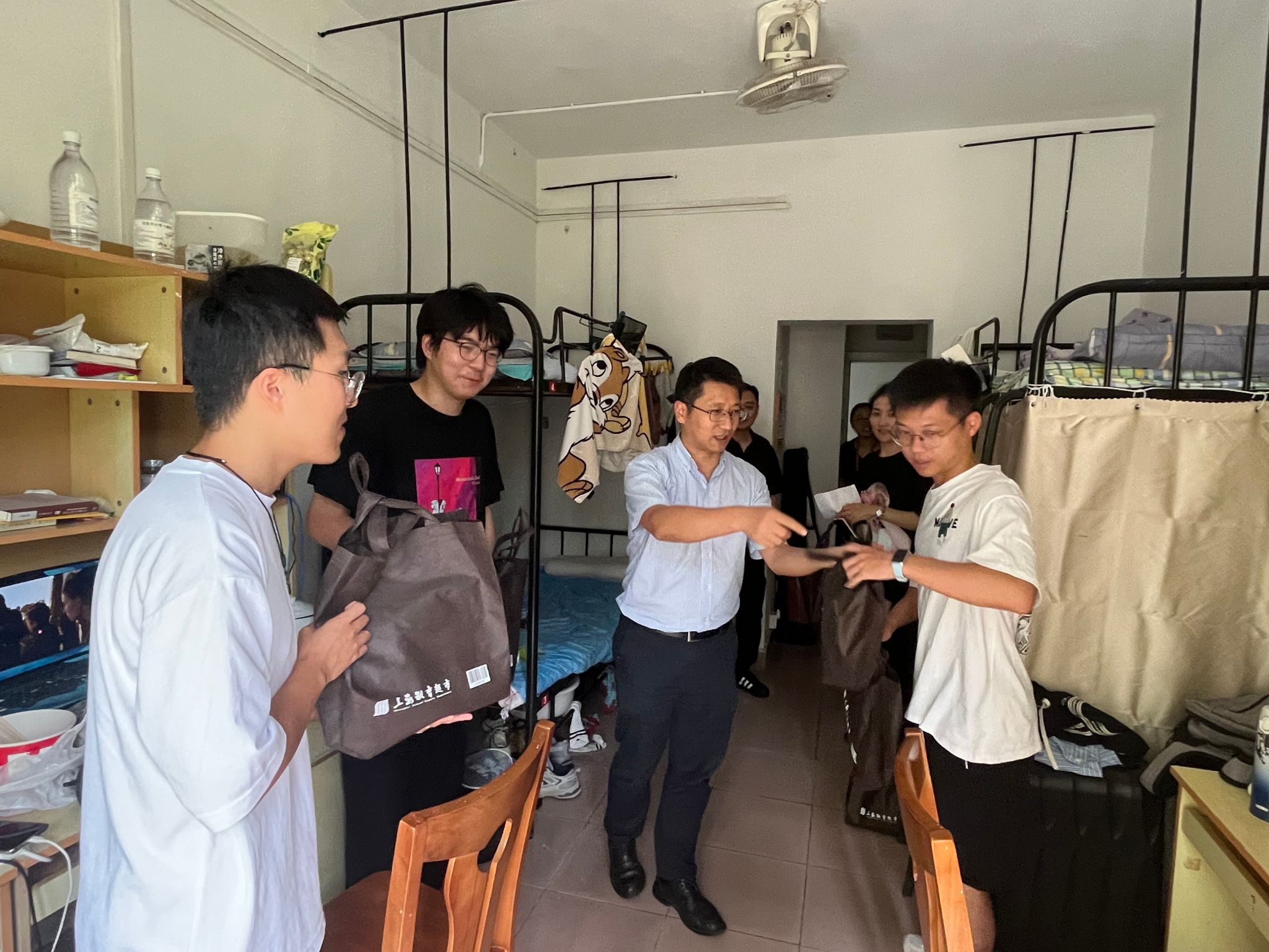 “家是最小国,国是千万家”。正值中秋、国庆双节来临之际,9月27日下午,威廉官网中国官方网站党委书记王国建,党委副书记、副院长张高峰和谢德连、黄丽娜两位辅导员等一行前往新生宿舍走访,为马院学子带去“团圆”的温暖与欢乐,向同学们表达关心,并为同学们赠上节日祝福与问候。 走访宿舍时,学院老师与同学们亲切交谈,了解新生入学后的学习生活情况、假期安排等。学院党委书记王国建为同学们逐一赠上节日礼包,勉励同学们珍惜时光、奋发有为。此外,他也提醒部分同学假期返乡注意安全,留校同学多和亲人联络,以解思乡之情。 此次慰问拉进了师生间的距离,增强了同学们对学校和学院的归属感。即使身在远方也能感受到如家人般的温暖,同学们纷纷表示,在今后的学习生活中将谨记老师们的教诲,扎实笃行,砥砺奋进。迎中秋,庆国庆,学院师生将持续传递这份浓浓暖意,为双节增添一抹亮色。(供稿:张心琪,摄影:邓昊琳) |