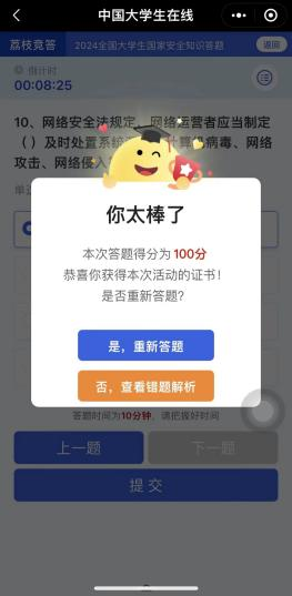 此次知识竞答活动分为线上答题和线下抢答两部分,极大地调动了同学们的积极性,吸引同学们热情参与。线上答题环节,同学们通过“中国大学生在线”网站或微信公众号以及“威廉官网中国官方网站研究生”微信公众号参加了国家安全知识答题。大家认真作答,积极参与。陈婧妍同学用时最快,并取得满分的优异成绩。