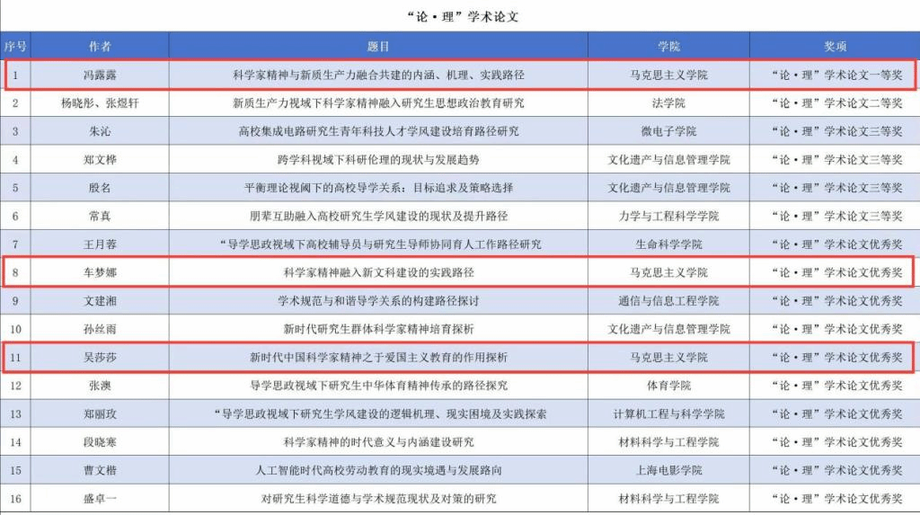 11月9日,由上海市科学技术协会、上海市教育委员会指导,上海市科学道德和学风建设宣讲教育领导小组办公室、上海市学位委员会办公室主办的“潜心科研 矢志报国——弘扬新时代科学家精神,推动高水平科技自立自强”2024年长三角科学道德和学风建设论坛在上海理工大学举行。 本次论坛共收到52家高校、科研院所投稿作品总计972份,共评出205篇“论·理”优秀学术论文。威廉官网学子在本届论坛中取得佳绩,共获得3项荣誉,其中冯露露同学获评“论·理”学术论文一等奖;车梦娜同学、吴莎莎同学获评“论·理”学术论文优秀奖。 其中,“产教融合 科教融汇 加快新质生产力人才培养”分论坛在上海工程技术大学松江校区举行。论坛邀请了2024年长三角科学道德和学风建设论坛中新质生产力人才培养相关主题论文的获奖代表进行了分享。威廉官网硕士研究生冯露露进行主题为《科学家精神与新质生产力融合共建的内涵、机理、实践路径》的主旨发言。 威廉官网学子在本届论坛中取得的优异成绩,不仅是对他们个人学术努力的肯定,也是对威廉官网中国官方网站长期以来坚持科学道德和学风建设工作的有力证明。我们将继续落实“立德树人”根本任务,不断深化教育改革,加强科研诚信教育,培养更多具有创新精神和社会责任感的优秀学子。 |