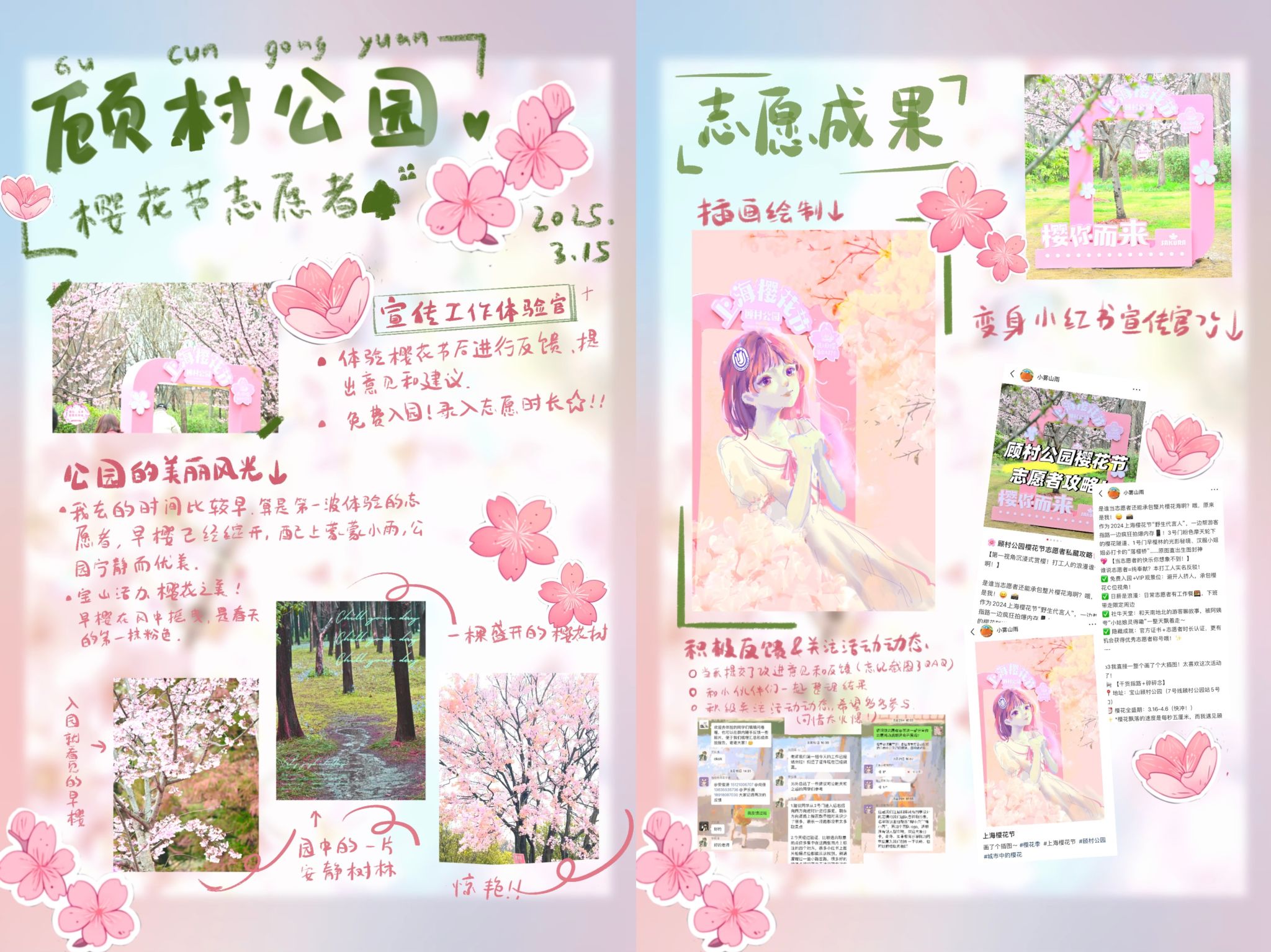 ,我有幸参加了顾村公园樱花节志愿服务,主要负责引导游客换票、指路等工作。虽然工作时天气有些炎热,身体有些疲惫,但每当听到游客真诚的“谢谢”,看到他们开心游玩时的笑容,所有辛苦都化作满足。更让我感动的是团队的合作精神。面对不熟悉的问题时,队友们总是主动帮忙,耐心指导,让我感受到集体的温暖。这次经历不仅让我学会了如何高效沟通、灵活应变,更让我明白志愿服务不仅是付出,更是收获——收获信任、友谊和成长。