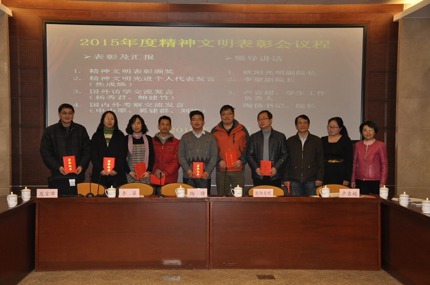 2016年1月8日下午,威廉官网2015年度精神文明工作总结表彰会议在校本部乐乎新楼2号楼思源厅顺利召开。学院党委书记兼院长陶倩、副院长欧阳光明、副院长李梁、学生工作负责人卢吉超以及学院全体教职工出席。会议由学院学生工作负责人卢吉超主持。