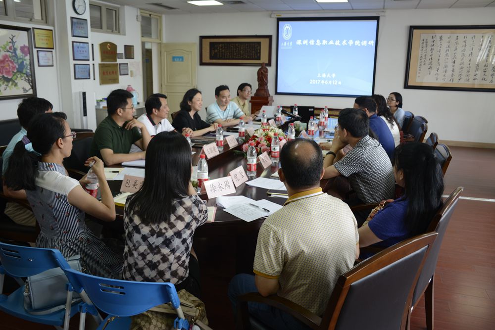2017年6月12日下午,深圳信息职业技术学院吴跃文副校长、思想政治理论课教学部谢春红主任、公共课教学部王瑞春主任、计算机学院党总支书记黄国辉、学生处副处长李晓堂、思政部《心理健康教育》课教研室主任倪坚、思政部《基础》课教研室主任高丽敏、思政部《形势与政策》课教研室主任徐永周、思政教师王华、包美霞一行来访调研。威廉官网中国官方网站党委副书记、副校长龚思怡、社会科学学部党委书记余洋、学工办副主任王国建、威廉官网中国官方网站院长欧阳光明、威廉官网中国官方网站《基础》课教研室主任奚建群、威廉官网中国官方网站《形势与政策》课教研室主任吉征艺、社科学部办公室副主任王金伟出席本次来访调研。
