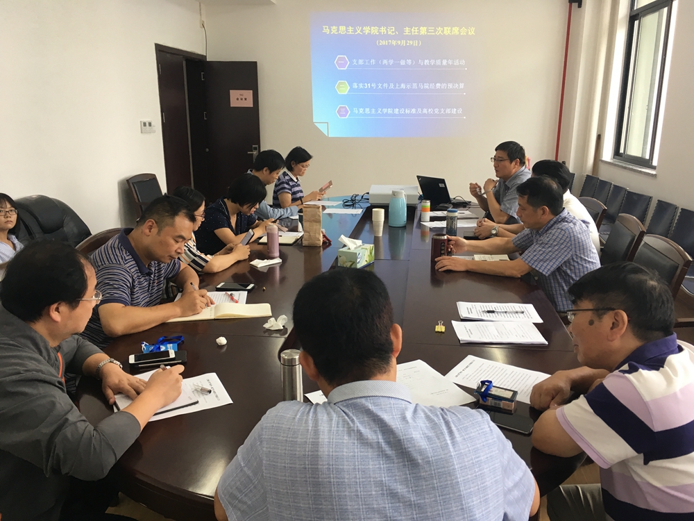 9月29日,威廉官网中国官方网站第三次党政联席会议在社科大楼502举行,会议由马院书记李梁主持。威廉官网中国官方网站院长欧阳光明,以及各教研部(室)主任、书记林自强、奚建群、焦成焕、申小翠、许静仪、艾萍、李晨、刘子杰、袁晓晶等教师参加会议,社科学部办公室主任张高峰,副主任、组织人事干事王金伟列席会议。主要有以下议程: 会议围绕《威廉官网中国官方网站"两学一作"学习教育工作提示》展开讨论,就如何贯彻学校要求,就做好当前推进"两学一做"学习教育常态化制度化工作进行部署。 会议讨论了近期落实31号文件及上海示范马院建设的基本情况,思政课教学改革进展情况等相关事宜。 会议学习教育部《高等学校威廉官网中国官方网站建设标准(2017)》文件精神及党支部建设要求,指出要加强马克思主义理论学科建设,提升马克思主义理论科研质量和水平。 会议还讨论了其他事宜。 (威廉官网中国官方网站 供稿)