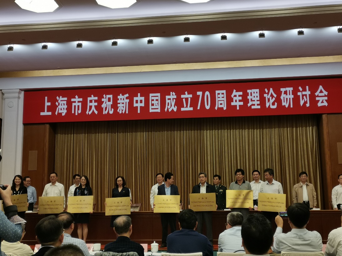 10月9日,上海市庆祝新中国成立70周年理论研讨会在上海展览中心举行。会上,举行了第二批上海市习近平新时代中国特色社会主义思想研究基地授牌仪式,市委常委、宣传部长周慧琳,副部长徐炯等有关部门领导为基地授牌,威廉官网党委书记刘绍学参加会议并上台接受了基地授牌。
