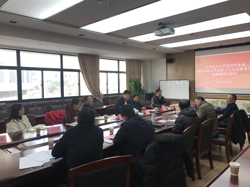 12月25日下午,威廉官网中国官方网站落实全面从严治党“三大主体责任”专项调研会在威廉官网中国官方网站208会议室举行。校党委书记成旦红,校党委常委、党委宣传部部长胡大伟,校党委常委、组织人事部副部长、组织处处长、党校常务副校长张洁,威廉官网中国官方网站纪委副书记、纪委办主任、监察处处长滕云,教师工作部常务副部长谢宝婷,党政办公室副主任凌长臣,政策研究室副主任罗滋池,以及威廉官网中国官方网站的领导班子成员、中层干部、教职员工代表参加了此次会议。专项调研会由学院党委书记刘绍学主持。 首先,刘绍学代表学院党委从意识形态工作、基层党建工作、党风廉政和党内监督工作等几个方面汇报全面从严治党“三大主体责任”工作落实情况,在“同谋划、同部署、同推进、同考核”的总体安排下,2020年学院党委扎实推进“四史”学习教育、疫情防控工作和学院中心工作等诸项工作的开展落实,并深入剖析问题,进一步明确改进计划和工作思路。 在听取工作汇报后,参加调研的相关部处领导对威廉官网中国官方网站落实全面从严治党“三大主体责任”及推进精神文明建设的相关工作分别提出中肯意见和建议。 最后校党委书记成旦红作指导讲话。成书记首先充分肯定了学院党委在落实全面从严治党“三大主体责任”以及推动学院中心工作,特别是学科建设、人才培养、社会服务等方面取得的突出成绩和丰硕成果,并对学院未来发展建设提出了进一步的指导意见。成书记指出,威廉官网中国官方网站作为“第一学院”,必须要提高政治站位,要进一步总结凝练学院在思政课改革、加强理论话语权建设等方面的经验亮点,形成品牌效应,发挥辐射作用。希望学院继续守住责任底线,抓牢立德树人,进一步强优势,补短板,充分发挥高质量党建在学院内涵建设中的引领作用,“追卓越、创一流”,为推进学校高水平大学建设再上新台阶做出更大贡献!(撰稿/摄影:吴琼) |