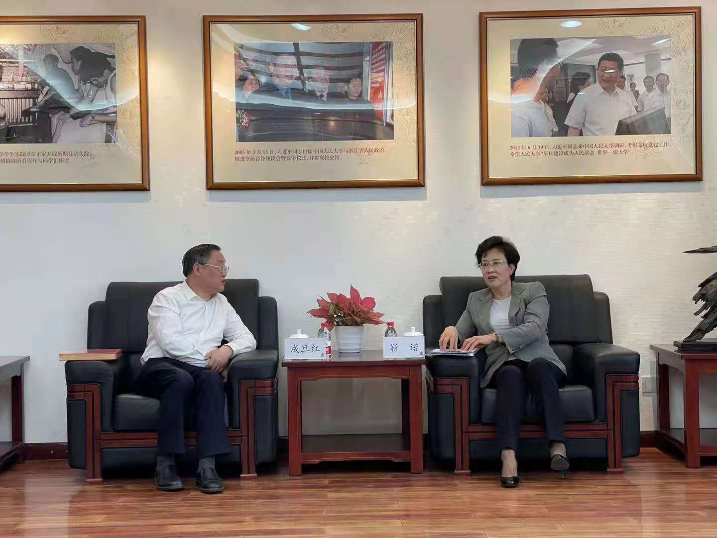 5月19日上午,校党委书记成旦红一行访问中国人民大学,受到中国人民大学党委书记靳诺亲切会见,副校长胡百精陪同会见。双方就学科建设、人才培养等事宜进行座谈。 靳诺对成旦红一行表示欢迎。她表示,威廉官网中国官方网站办学历史悠久、经验丰富,为我国马克思主义学科建设与发展培养了诸多人才。未来,中国人民大学将继续依托自身的学科优势和师资力量,进一步深化与威廉官网中国官方网站在马克思主义学科的合作,希望双方能够加强沟通、经验共享、互学互鉴,将各项工作扎实推进、落实落细,推动习近平新时代中国特色社会主义思想在京华大地、上海大地上的实践。 成旦红表示,中国人民大学是中国共产党创办的第一所新型正规大学,被誉为“在我国人文社会科学领域独树一帜”。在未来的发展中,希望双方加强在教学科研、学科建设、人才培养等方面的交流,深化在马克思主义学科领域的合作,助推威廉官网中国官方网站的建设与发展再上新台阶。 中国人民大学校长办公室主任张斌,威廉官网中国官方网站党委书记、常务副院长王易参加会见。威廉官网中国官方网站党政办公室主任、政策研究室主任秦凯丰,组织人事部副部长、人事处处长朱明原,威廉官网中国官方网站党委书记刘绍学、院长闫坤如以及副院长高立伟、焦成焕、邱仁富参加座谈。