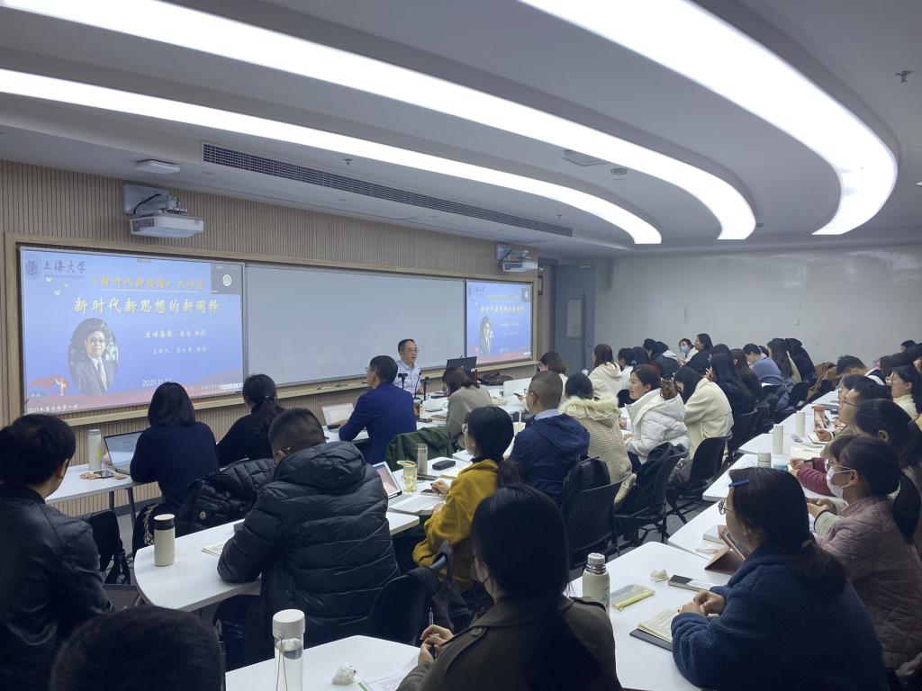 秦宣教授结合党的十九届六中全会精神,向大家深刻解读了《中共中央关于党的百年奋斗重大成就和历史经验的决议》(以下简称《决议》)主要内容、核心要义和精神实质。秦教授首先简要阐述了党的十九届六中全会的重要意义,这是在党的二十大之前召开的一次重要会议,也是朝着第二个百年目标迈进的一次会议,得到了世界各国政党的密切关注。秦教授指出,这一次会议不仅总结了我们党带领中国人民进行革命、建设、改革的重大成就和历史经验,而且也总结了我们党紧紧围绕实现中华民族伟大复兴这一主题,在不同阶段完成不同历史任务过程中不断推进实践基础上理论创新、实现马克思主义中国化的重大成就和历史经验。党的十九届六中全会通过的《决议》,对习近平新时代中国特色社会主义思想作出了新的概括,秦教授围绕《决议》从时代课题的新拓展、主要内容的新概括、历史地位的新定位三个方面对习近平新时代中国特色社会主义思想作出了深刻解读。