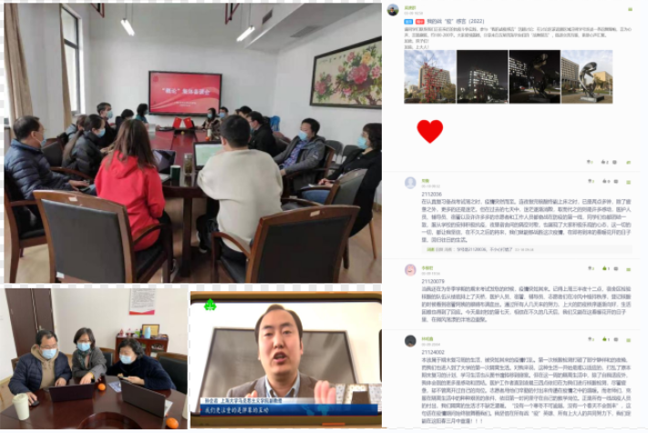 【主动谋划 周密安排】 学院做到第一时间响应,统筹落实线上教学,就课程平台搭建、教学流程规范及相关注意事项作了具体地安排。积极开展集体备课、整合教学资源,攻坚克难,用好学院传统改革优势,突破理论与现实隔阂,实现技术与教学内容的匹配、与教育对象的契合,全面推进思政课线上教学,打造有虚有实、有棱有角、有情有义、有滋有味的思政课堂,确保学生在线学习效果。