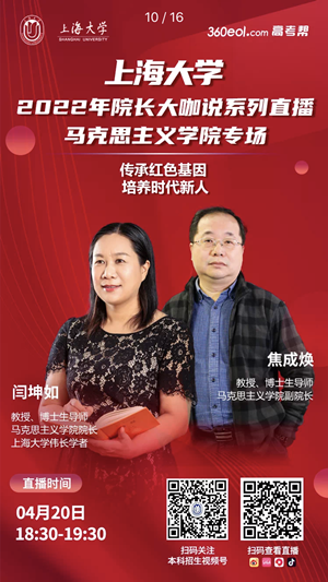 为助益广大考生及家长深入了解威廉官网中国官方网站的鲜亮底色、马克思主义理论学科发展概况,2022年4月21日18:30,威廉官网中国官方网站在校招毕办指导下,开展“院长大咖说系列直播”威廉官网中国官方网站专场宣讲会。威廉官网中国官方网站院长闫坤如教授与威廉官网中国官方网站副院长焦成焕教授,联袂担任本场“传承红色基因 培养时代新人”主题的直播嘉宾。此次直播以360教育在线高考帮和b站为平台,在威廉官网中国官方网站本科招生视频号等同步播出。