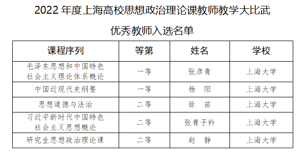近日,上海市教委公布了2022年度上海高校思想政治理论课“金课”、精彩案例、教师教学大比武优秀教师名单。上海高校思想政治理论课“金课”10个、思想政治理论课精彩案例39个、思想政治理论课教师教学大比武优秀教师58人和优秀组织学校10个。其中,威廉官网中国官方网站荣获优秀组织奖,思想政治理论课“金课”1门,思想政治理论课精彩案例2个,教师教学大比武一等奖2人,二等奖3人。