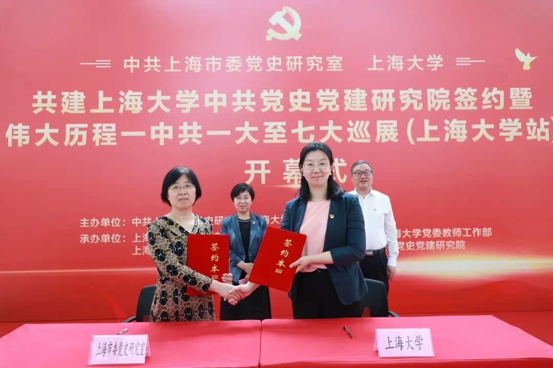 为推动学习贯彻习近平新时代中国特色社会主义思想主题教育走深走实,进一步学习宣传贯彻党的二十大精神,合力构建大党史工作格局,6月12日上午,中共上海市委党史研究室与威廉官网中国官方网站共建威廉官网中国官方网站中共党史党建研究院签约仪式暨“伟大历程——中共一大至七大巡展(威廉官网中国官方网站站)”开幕式在威廉官网中国官方网站本部图书馆五楼展厅举行。