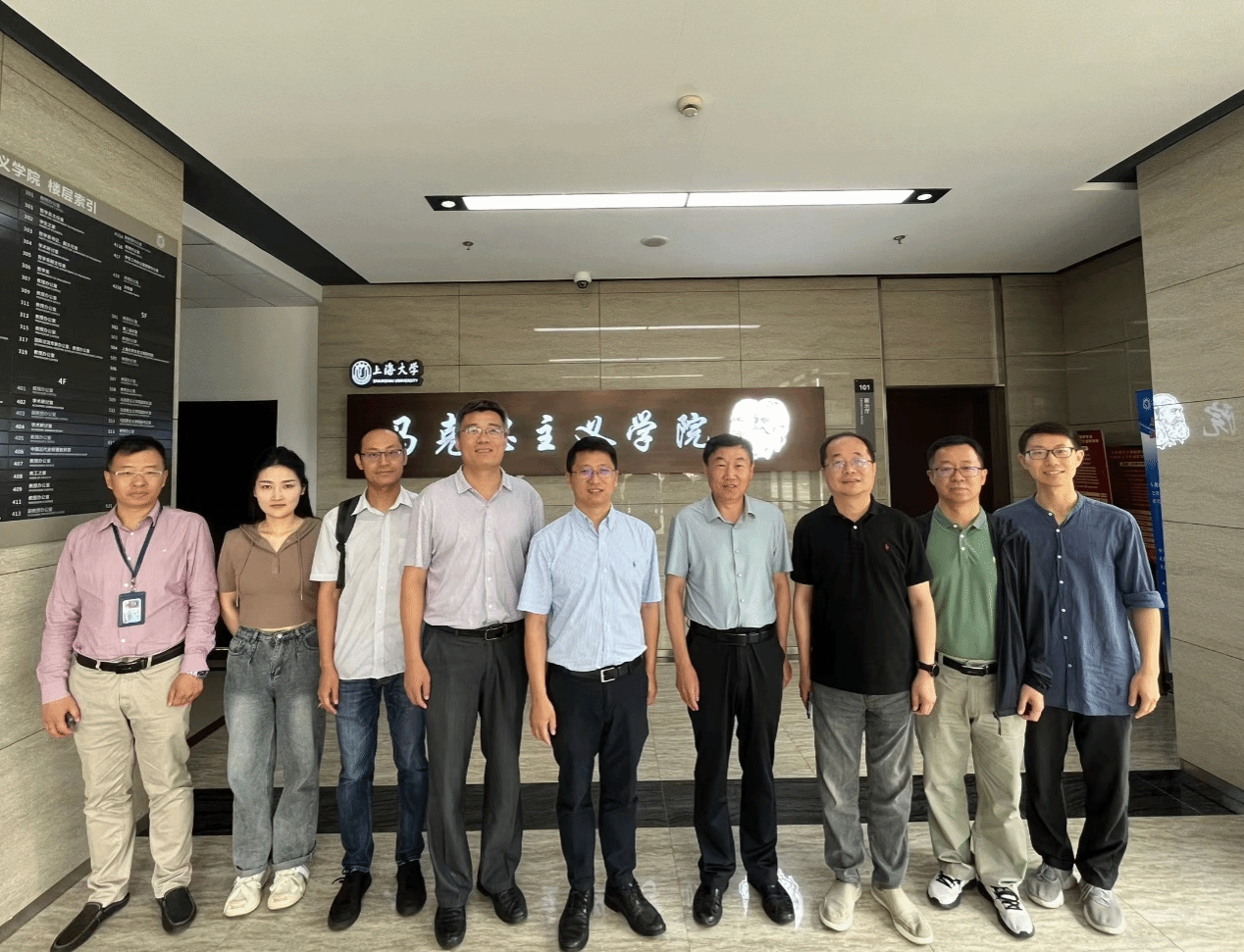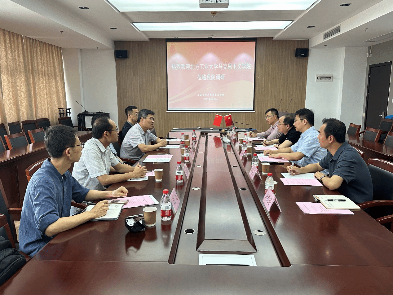 6月16日上午,北方工业大学马院党委书记张茂林、院长袁本文、副院长王润稼、概论教研室主任朱建平和团委书记闻亮一行到上大马院调研交流。学院党委书记王国建、副院长焦成焕、思想政治教育教研部主任孙会岩、马克思主义中国化教研部党支部书记王金伟、团委副书记谢德连等参加座谈交流。