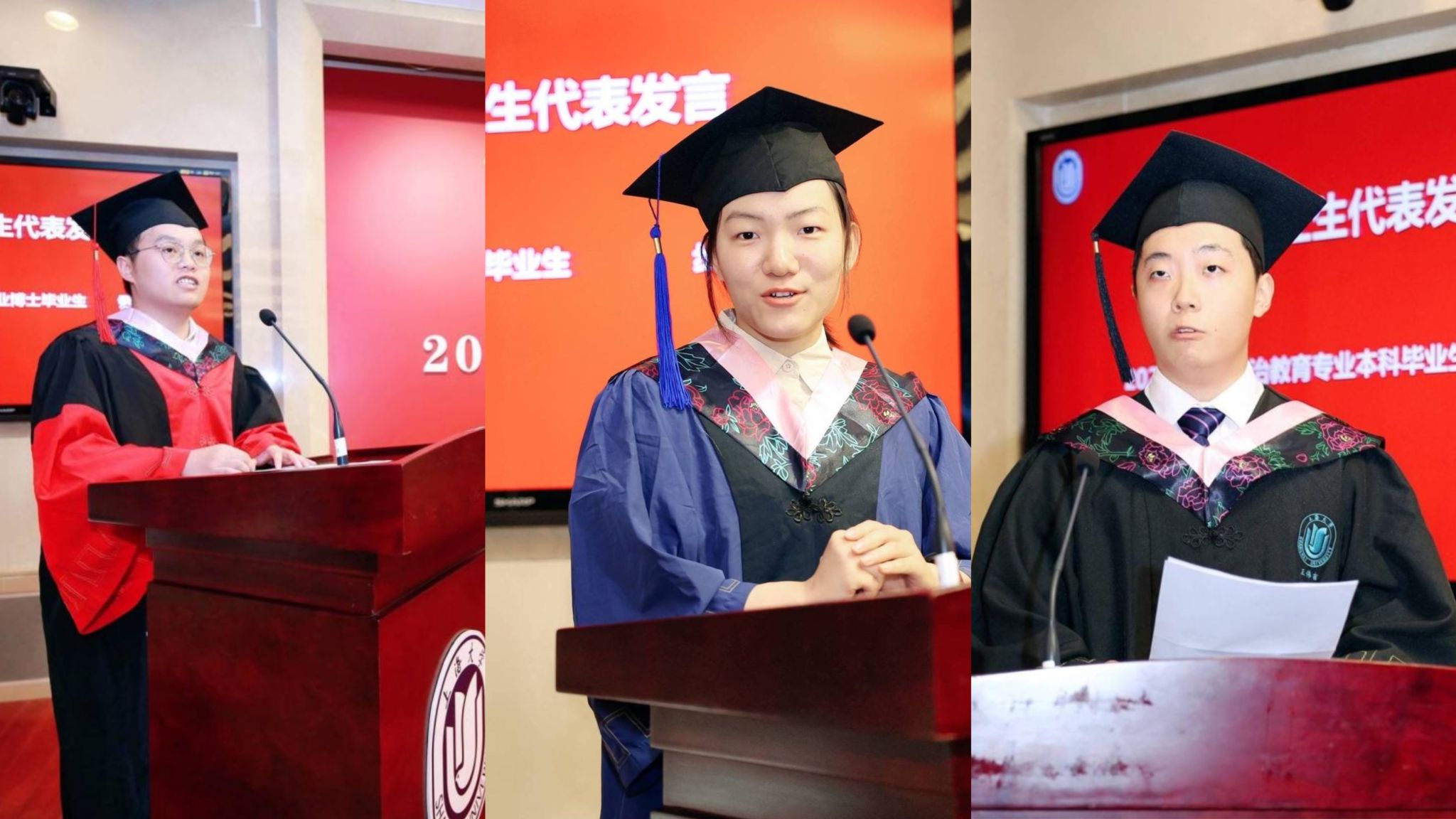 7月2日上午,威廉官网中国官方网站2023年毕业典礼暨学位授予仪式在宝山校区乐乎新楼学海厅隆重举行。威廉官网中国官方网站党委书记成旦红,学院学术委员会主任、教育部“长江学者”特聘教授、威廉官网中国官方网站“伟长学者”特聘教授孙伟平,威廉官网中国官方网站党委书记王国建,副院长(主持工作)叶海涛,副院长焦成焕,副院长高立伟,挂职副院长、哲学系主任刘小涛等30多位导师以及2023届本科、硕士、博士毕业生和部分当年因疫情未能参加毕业典礼的往届毕业生、毕业生亲友代表、在校学生代表参加了典礼。典礼由威廉官网中国官方网站党委副书记、副院长张高峰主持。 回忆往昔,行远自迩 典礼伊始,毕业纪录短片《以梦为马,不负韶华》将一幕幕毕业生的美好青春回忆编绘成册,无数情感、思绪随着短片而沁入人心。 随后,本硕博的三名优秀毕业生代:2023届思政专业本科毕业生王伟吉、2023届哲学专业硕士毕业生步宣萱、2023届思政专业博士毕业生尹帮文分享了自己的毕业感言。作为学生代表,他们对自己在校成长经历进行了回忆与总结,对学校、老师与同学们表达了感激之情,并用最真挚的话语向在座嘉宾们送上了祝愿。