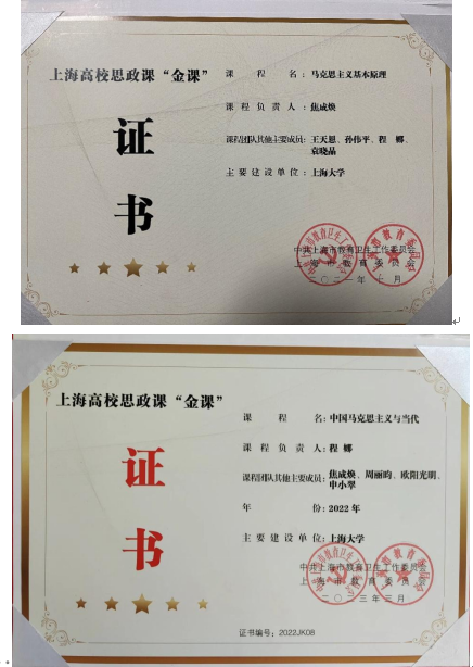 三、落实讲话精神,稳步推进改革,推动原理教学团队高质量发展 为确保讲话精神得到有效贯彻落实,团队制定了详细工作计划和实施方案,经过五年的实践,取得了一定的成效。(1)教学改革成果获上海市教学成果奖二等奖。“马克思主义基本原理”入选上海高校重点课程、上海高校思政课“金课”,“中国马克思主义与当代”入选上海高校思政课“金课”;(2)两项教学案例获得上海高校思政课精彩案例称号;(3)焦成焕教授获得上海市育才奖、宝钢优秀教师奖,程娜教授获得上海市马克思主义理论教学科研“中青年拔尖人才”,袁晓晶副教授获得上海市思政课大比武二等奖;(4)张靖杰副教授获批国家社科基金青年项目;高红明、宋政超博士获批上海市哲社青年项目等;(5)团队教师五年来共发表高水平论文30余篇,撰写的决策咨询报告多次受到省部级相关单位采纳、批示,同时,教研部多位教师承担上海市“大思政课”示范高校建设等重大任务。 “3·18”重要讲话为我们指明了思政教育改革的方向和目标。马克思主义基本原理教学团队将继续深入贯彻落实讲话精神,不断创新教育教学方法和手段,努力提高思政课教育教学质量,为培养德智体美劳全面发展的优秀人才作出更大贡献。