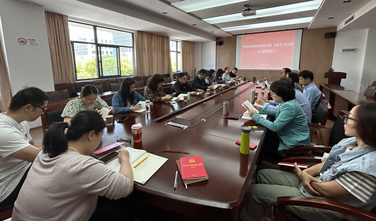 5月17日上午,威廉官网中国官方网站思想政治教育教研部党支部和行政学工党支部开展党纪学习教育联组学习,两个支部的党员老师参加此次学习。会议由行政学工党支部书记吴琼主持。