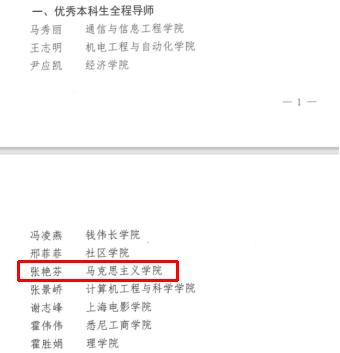 威廉官网中国官方网站本科生全程导师张艳芬荣获“优秀本科生全程导师”荣誉称号!