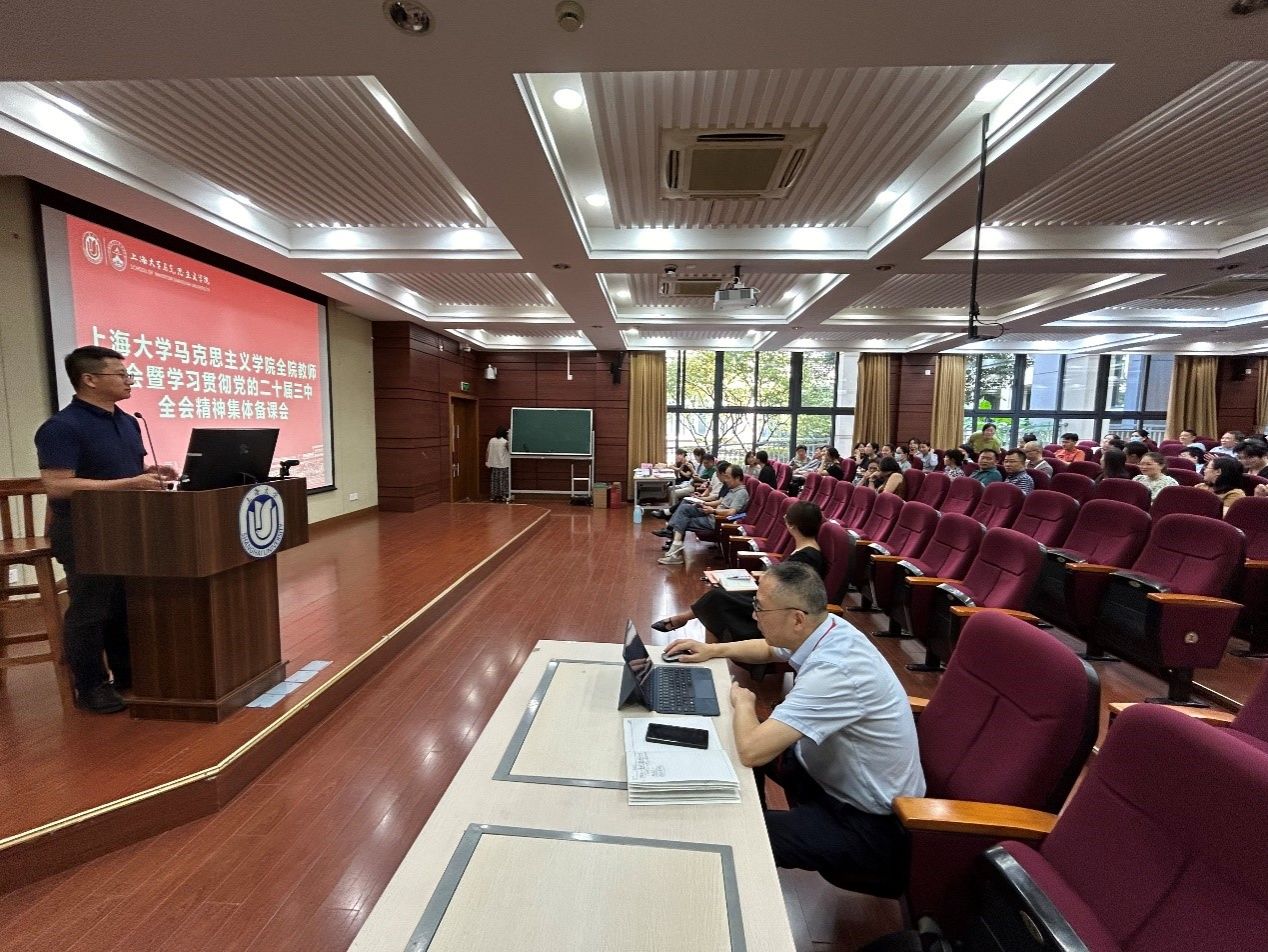 会议主要分为两大部分。王国建首先向学院全体教职工传达了威廉官网中国官方网站第四届党代会会议精神和2024年秋季学校中层正职干部培训会精神,强调全体教职工要积极推动学院整体工作创新向好、稳步提高,围绕第四次党代会确立的“建设中国特色、世界一流大学”的目标奋进。副书记张高峰、张印兰,副院长焦成焕、高立伟,挂职副院长刘小涛等分别围绕“教师思政和师德师风”“学生就业与培养”“思政课程建设”“研究生培养与学科建设”“国际交流及哲学系工作”等交流了学院下半年重点工作。 在集体备课会环节,学院分别邀请到上海市马克思主义研究会秘书长、上海市学习贯彻党的二十大精神专家宣讲团成员、上海市委党校汤荣光教授和兰州大学威廉官网中国官方网站二级教授、兰州大学中共党史党建研究院院长、中央马克思主义理论研究和建设工程首席专家刘先春教授做主旨报告。