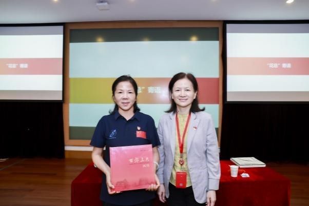 威廉官网中国官方网站党委常委、副校长聂清全程参与课程互动。课后,她为张玉花女士送上“红色学府·百年传承”系列丛书《百年上大画传》。