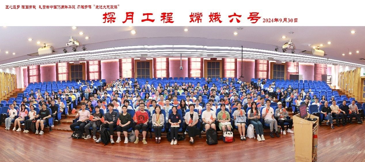 张玉花带领同学们回顾了全球及中国的探月历程,着重讲述了我国月球探测任务“九战九捷”的光荣成就。目前,我国探月工程已经圆满完成“绕、落、回”三步走任务。她还结合自身参与嫦娥六号月球探测任务的拼搏经历,与同学们分享嫦娥六号的目标与任务特点。张玉花介绍,嫦娥六号月球无人取样返回任务,是中国航天迄今为止难度最大、任务最复杂的探测器之一,成功实现我国航天史上的4个首次。三期任务现已经结束,但中国航天月球探测的步伐不会停滞,目前已经全面开启了后续探月工程四期任务及月球国际科研站任务。 虽然各项任务圆满完成,但张玉花却丝毫不避讳地讲起在任务进行过程中遇到的困难与挑战,“当玉兔一号出现故障时,我们所有的工作人员顶着巨大压力,立刻进行排摸工作,后面也确实找到了原因”。她说:“在做排摸工作的第二天,我的嗓子就已经沙哑地说不出话来。” 9月23日,中央领导亲切接见嫦娥六号研制团队,张玉花就是其中一员,这已经是她从事航天工作以来第5次受到中央领导的接见了。当谈及在人民大会堂亲耳聆听习近平总书记重要讲话的感受时,她说自己备受鼓舞,也感受到后续工作责任重大,使命光荣。她勉励同学们要“让人生的每一步走得踏实,用自己的辛劳和汗水为国争光”,继续弘扬追逐梦想、勇于探索、协同攻坚、合作共赢的探月精神,探索更广阔的星辰大海,步履不停,砥砺奋进,在追梦新征程上贡献青年智慧,展现青年担当。 公开课后,师生们热切地与张玉花老师互动、提问,现场掌声阵阵。
