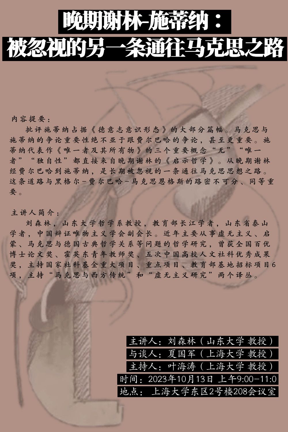 【23-10-13】刘森林:晚期谢林-施蒂纳:被忽视的另一条通往马克思之路