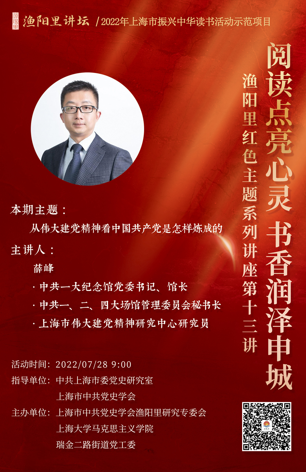 7月29日上午,2022年“渔阳里讲坛” 第十三讲暨“阅读点亮心灵书香润泽申城——渔阳里红色主题系列讲座”在瑞金二路街道党建中心开讲。本次讲坛特邀中共一大纪念馆馆长薛峰做了题为《从伟大建党精神看中国共产党是怎样炼成的》的专题讲座。 薛峰馆长从中国共产党诞生之初的先进性密码、伟大建党精神生成的逻辑、伟大建党精神蕴含的真谛等几个方面,全面地讲述了伟大建党精神和中国共产党创建之间的联系。“坚持真理、坚守理想,践行初心、担当使命,不怕牺牲、英勇斗争,对党忠诚、不负人民”,这32个字不仅展现了中国共产党的伟大建党精神,追溯了中国共产党的精神之源,更是蕴含着中国共产党是如何炼成的“密码”。薛峰围绕习近平总书记在庆祝中国共产党成立100周年大会上的重要讲话精神,系统阐述了伟大建党精神蕴含的真谛以及上海作为党的诞生地的必然性和缘由,他认为,中国共产党诞生之时的先进性密码有三,一是理论的先进性,二是组织的先进性,三是诞生在最先进的城市里。中国共产党成立时,全国有党员58人,其中有21人后来成为革命烈士,从占比来看将近四成。迄今为止,这在全世界的执政党中没有第二个,这就是中国共产党人不怕牺牲、英勇斗争的最有力证明。由此可见,现代的城市孕育现代的政党;精神家园涵养精神之源;先驱们在上海书写伟大建党精神。他提出,我们要从伟大建党精神中读懂百年奋斗凝铸的经验,以及中国共产党人初心的力量、信仰的精神、使命的觉悟,深刻理解历史和人民最终选择马克思主义、选择中国共产党的内在必然。 “渔阳里讲坛”是由上海市委党史研究室、上海市中共党史学会作为指导单位,上海市中共党史学会渔阳里研究专委会、威廉官网中国官方网站、瑞金二路街道党工委联合举办的党史学习品牌活动,以学习贯彻习近平新时代中国特色社会主义思想为主题,宣讲“中国共产党创建史”为主线,旨在将上海丰富的红色资源转化为党员学习教育的生动教材,用中国共产党人的精神谱系教育人、激励人、感召人。 “渔阳里讲坛”自2020年9月开始首讲,每月一次,至今已举办13次。该项目于今年获评“2022 年上海市振兴中华读书活动示范项目”。 |