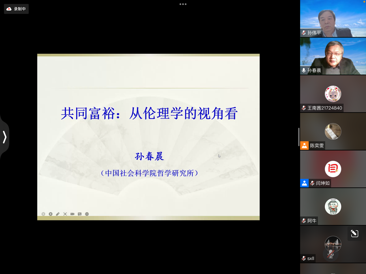 2022年5月14日晚7时整,威廉官网中国官方网站马克思主义理论高端论坛第九期顺利举行,本次论坛邀请到中国社会科学院研究员、中国社会科学院应用伦理研究中心主任、中国伦理学会会长孙春晨教授担任主讲,由威廉官网中国官方网站孙伟平教授主持,校内外师生共计200余人参与本次会议。 孙春晨教授主要从四个方面介绍了作为社会发展伦理目标的“共同富裕”概念。首先他从传统文化中的大同社会理想进行导入,讲明新时代提出共同富裕的社会背景,接着对“共同富裕”的历史沿革进行了详细的阐述,随后他从富裕的广度、性质、来源、内容对“共同富裕”的内涵进行讲解。 接下来,孙春晨教授从经济伦理角度出发,讲解了体现效率原则和公平竞争原则的初次分配与共同富裕。他认为,初次分配由市场机制自发生成,但基于市场的分配机制以经济效率为核心的缘故,由此导致社会成员在初次分配中获得的财富呈现出不尽相同的情形。而要改变市场机制下的财富分配不公平状况,必须借助于再分配和第三次分配。而实现共同富裕,需要更好地发挥市场机制配置资源的基础性决定作用,进一步开放和完善市场,解决市场机制运行过程中出现的权力寻租、垄断、暗箱操作和规则不透明等问题。 紧接着,孙春晨教授从制度伦理出发,认为通过再分配实现共同富裕是政府的道德责任。再分配机制由政府主导,体现了政府促进分配正义、实现共同富裕的道德意图,是推进共同富裕的制度伦理设计。政府通过实施再分配职能来推进共同富裕、实现公平正义,具有伦理正当性。面对财富分配中出现的问题,政府需要及时构建相应的再分配制度,为全体社会成员提供有尊严的生活保障。 随后,孙春晨教授从道义伦理出发,强调第三次分配是实现共同富裕的道德力量。第三次分配是对初次分配和再分配的有益补充,它以道德性的分配机制弥补初次分配和再分配中存在的不足和缺憾。第三次分配是道义伦理在财富分配领域的典型表现和具体实践,是社会公众自发的以分配正义和共同富裕为行动目标的道德实践活动,满足了人们尤其是弱势群体对分配正义和共同富裕的渴求与期待。慈善事业和志愿服务是第三次分配的主要方式。