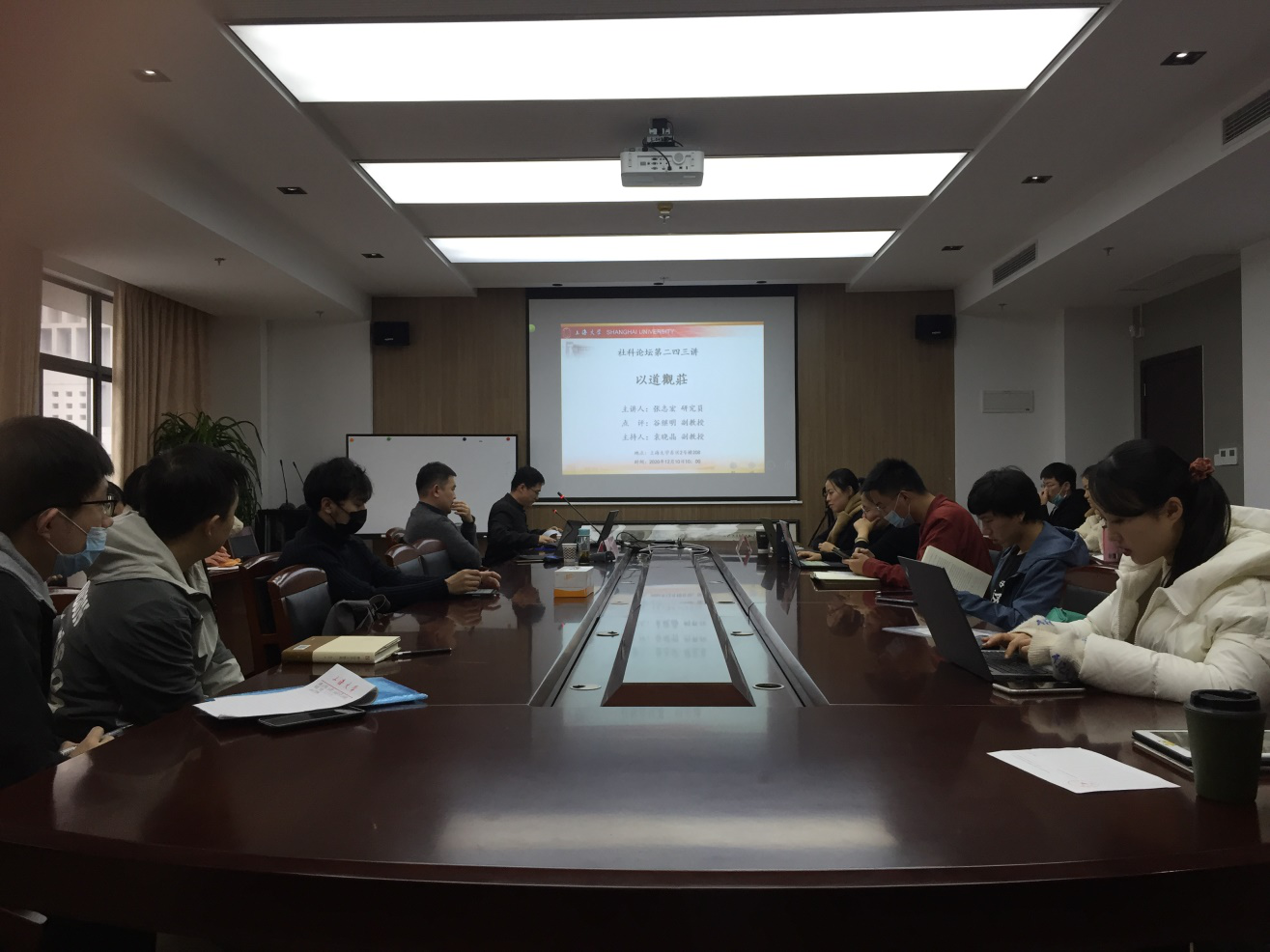 2020年12月10日10点,威廉官网中国官方网站社科论坛第243期专题讲座“以道观庄”在威廉官网中国官方网站东区2号楼208会议室成功举行。本次讲座由上海社会科学院博士生导师、哲学研究所中国哲学研究室副主任、中国人民大学孔子研究院政治哲学研究中心客座研究员张志宏老师主讲,威廉官网中国官方网站副教授袁晓晶老师主持,同济大学哲学系副教授谷继明老师点评,威廉官网中国官方网站、社会科学学部(筹)本科生、研究生共同参加了本次讲座。 讲座伊始,袁晓晶老师向大家介绍了本次讲座主题以及张志宏老师的基本情况,在场师生向张志宏老师以及点评人谷继明老师表示了热烈的欢迎。从绪论开始,张志宏老师为大家解释了三玄以及道家和儒家的区别与联系,不同于儒家的“天下兴亡匹夫有责”,道家推崇的是“独善其身”。随后,张志宏老师分别从庄子本人以及《庄子》一书两方面展开深入讲解。张志宏老师将儒家、墨家代表人物与道家庄子进行对比,孟子倡导仁爱,墨子主张非攻,而庄子则提出物道观,认为一切都应跳脱出物的框架来看待,初步表明了道家“超脱”的内核。以庄子对待做官的态度为例,张志宏老师把庄子所做比喻以生动通俗的语言娓娓道来,牺牛虽然“衣以文绣”,但最终逃不过被送入庙堂祭祀的命运,不如做一只云野间的孤豚,自由自在。而《庄子》一书继承了庄子本人的思想并加以精炼,张志宏老师通过为大家梳理《庄子》各篇章以及《南华真经》的内容,揭示了道家“超脱一切,唯道观之”的思想精髓。 讲座的第二部分围绕庄子的物道观展开,张志宏老师先从总的物道观角度出发,说明了庄子思想中的“以物观之”与“以道观之”的联系,认为前者是后者的基础,后者则是前者升华演化的结果。而后,张志宏老师以清晰的逻辑条理,从何为物、什么叫“以物观之”,何为道以及什么叫“以道观之”两方面入手,认为在物的层面上,“以物观之”依赖于主观判断,通过事物表象声色进行判断始终有其弊端,而在道的层面上,无论物质形态如何发生变换,其本质和规律是不变的,更深层次地解释了庄子思想中的物道观。最后,张志宏老师以庖丁解牛的故事对庄子思想进行了系统的总结,表明了从“物”层面上升到“道”层面的必要性,同时也提供了如何从“物”层面上升到“道”层面的科学方法,通过以“道”观《庄子》内七篇升华了整场讲座的主旨。 张志宏老师的精彩讲解结束后,由谷继明老师对其进行点评。谷继明老师谈到,本次讲座令他受益匪浅,当今网络时代充斥着“内卷”现象,在竞争激烈的环境下,人人自贵而相贱,因此出现了一系列网络暴力事件,庄子的思想至今仍有较强的现实意义。同时,谷继明老师也提出了自己的思考——以物道观的角度来看,我们应该如何更好地将庄子思想应用到当今这个时代,是一个值得讨论的命题。在场的师生对本次讲座亦表示出极大的兴趣,同学们对价值判断、意识形态、庄子内七篇等方面存在的疑惑进行了提问,张志宏老师对所有问题均进行了详细的解答。本次讲座紧紧围绕“以道观庄”这一主题,内容丰富,生动有趣,增强了大家对于中华传统思想的知识储备,加深了在场师生对道家思想和庄子思想的理解。 威廉官网中国官方网站2020级研究生刘日恬供稿 |