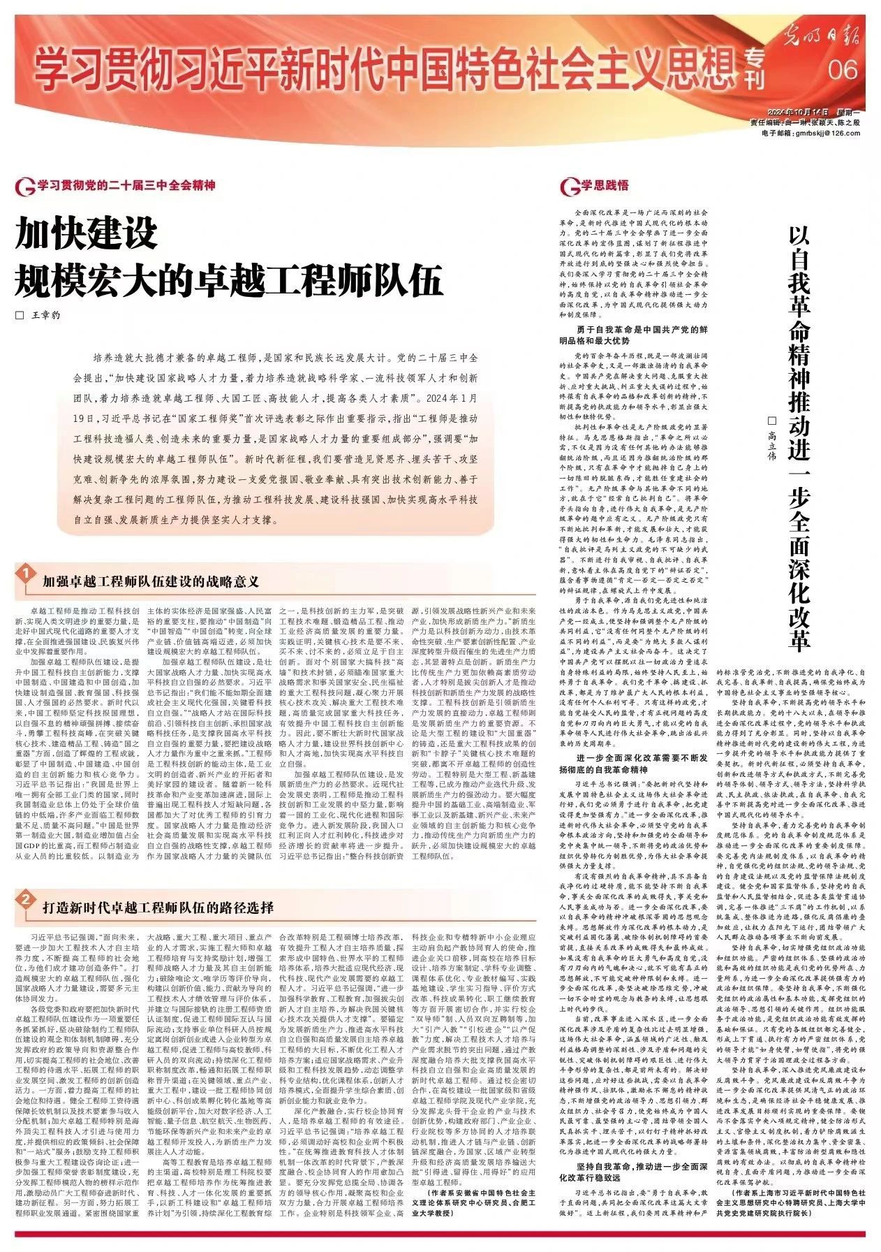 以自我革命精神推动进一步全面深化改革 全面深化改革是一场广泛而深刻的社会革命,是新时代推进中国式现代化的根本动力。党的二十届三中全会擘画了进一步全面深化改革的宏伟蓝图,谋划了新征程推进中国式现代化的新篇章,彰显了我们党将改革开放进行到底的坚强决心和强烈使命担当。我们要深入学习贯彻党的二十届三中全会精神,始终保持以党的自我革命引领社会革命的高度自觉,以自我革命精神推动进一步全面深化改革,为中国式现代化提供强大动力和制度保障。 勇于自我革命是中国共产党的鲜明品格和最大优势 党的百余年奋斗历程,既是一部波澜壮阔的社会革命史,又是一部激浊扬清的自我革命史。中国共产党在解决重大问题、克服重大挫折、应对重大挑战、纠正重大失误的过程中,始终葆有自我革命的品格和改革创新的精神,不断提高党的执政能力和领导水平,彰显出强大韧性和独特优势。 批判性和革命性是无产阶级政党的显著特征。马克思恩格斯指出,“革命之所以必需,不仅是因为没有任何其他的办法能够推翻统治阶级,而且还因为推翻统治阶级的那个阶级,只有在革命中才能抛掉自己身上的一切陈旧的肮脏东西,才能胜任重建社会的工作”。无产阶级革命与其他革命不同的地方,就在于它“经常自己批判自己”。将革命矛头指向自身,进行伟大自我革命,是无产阶级革命的题中应有之义。无产阶级政党只有不断地批判和革新,才能发展和壮大,才能获得强大的韧性和生命力。毛泽东同志指出,“自我批评是马列主义政党的不可缺少的武器”。不断进行自我审视、自我批评、自我革新,意味着主体在高度自觉下的“辩证否定”,蕴含着事物遵循“肯定—否定—否定之否定”的辩证规律,在螺旋式上升中发展。 勇于自我革命,源自我们党先进性和纯洁性的政治本色。作为马克思主义政党,中国共产党一经成立,便坚持和强调整个无产阶级的共同利益,它“没有任何同整个无产阶级的利益不同的利益”,而是要“为绝大多数人谋利益”,为建设共产主义社会而奋斗。这决定了中国共产党可以摆脱以往一切政治力量追求自身特殊利益的局限,始终坚持人民至上,始终勇于自我革命。我们党干革命、搞建设、抓改革,都是为了维护最广大人民的根本利益,没有任何个人私利可寻。只有这样的政党,才能自觉接受人民的监督,才有正视问题的高度自觉和刀刃向内的巨大勇气,才能以党的自我革命领导人民进行伟大社会革命,跳出治乱兴衰的历史周期率。 进一步全面深化改革需要不断发扬彻底的自我革命精神 习近平总书记强调:“要把新时代坚持和发展中国特色社会主义这场伟大社会革命进行好,我们党必须勇于进行自我革命,把党建设得更加坚强有力。”进一步全面深化改革,推进新时代伟大社会革命,必须坚守党的自我革命根本政治方向,坚持和加强党的全面领导和党中央集中统一领导,不断将党的政治优势和组织优势转化为制胜优势,为伟大社会革命提供强大力量支撑。 有没有强烈的自我革命精神,具不具备自我净化的过硬特质,能不能坚持不断自我革命,事关全面深化改革的成败得失,事关党和人民事业成功与否。进一步全面深化改革,要以自我革命的精神冲破根深蒂固的思想观念束缚。思想解放作为深化改革的根本动力,是突破利益固化藩篱、破除体制机制障碍的首要前提,直接关系改革的成败得失和最终成效。如果没有自我革命的巨大勇气和高度自觉,没有刀刃向内的气魄和决心,就不可能有真正的思想解放,不可能突破种种限制和束缚。进一步全面深化改革,要坚决破除思维定势,冲破一切不合时宜的观念与教条的束缚,让思想跟上时代的步伐。 当前,改革事业进入深水区,进一步全面深化改革涉及矛盾的复杂性比过去明显增强,这场伟大社会革命,涵盖领域的广泛性、触及利益格局调整的深刻性、涉及矛盾和问题的尖锐性、突破体制机制障碍的艰巨性、进行伟大斗争形势的复杂性,都是前所未有的。解决好这些问题,应对好这些挑战,需要以自我革命精神强作风、壮肌体,激励永不懈怠的精神状态,不断增强党的政治领导力、思想引领力、群众组织力、社会号召力,使党始终成为中国人民最可靠、最坚强的主心骨,团结带领全国人民真抓实干、埋头苦干,以钉钉子精神抓好改革落实,把进一步全面深化改革的战略部署转化为推进中国式现代化的强大力量。 坚持自我革命,推动进一步全面深化改革行稳致远 习近平总书记指出,要“勇于自我革命,敢于直面问题,共同把全面深化改革这篇大文章做好”。迈上新征程,我们要用改革精神和严的标准管党治党,不断推进党的自我净化、自我完善、自我革新、自我提高,确保党始终成为中国特色社会主义事业的坚强领导核心。 坚持自我革命,不断提高党的领导水平和长期执政能力。党的十八大以来,在领导和推进全面深化改革过程中,党的领导水平和执政能力得到了充分彰显。同时,坚持以自我革命精神推进新时代党的建设新的伟大工程,为进一步提升党的领导水平和执政能力提供了重要契机。新时代新征程,必须坚持自我革命,创新和改进领导方式和执政方式,不断完善党的领导体制、领导方式、领导方法,坚持科学执政、民主执政、依法执政,在自我革命、自我完善中不断提高党对进一步全面深化改革、