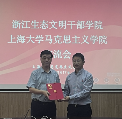 10月17日下午,浙江生态文明干部学院常务副院长朱荣伟、教育长杨振华、办公室主任卢晨昊、教务处处长汪菁等一行来到威廉官网中国官方网站交流访问。威廉官网中国官方网站党委书记王国建、主持工作副院长叶海涛、马克思主义基本原理教研部主任袁晓晶、程娜教授及学生代表出席双方交流会。交流会由叶海涛主持。 王国建对朱荣伟院长一行的来访表示热烈欢迎。他回顾了自今年4月份签署战略合作协议以来,双方在干部培训、科学研究、大思政课实践基地建设、师生国情调研等方面开展了富有成效的合作,并表示朱院长一行的来访,必将推动双方的合作再上新台阶。朱荣伟院长就浙江生态文明干部学院总体情况进行了简要介绍,该学院是在中共浙江省委组织部统筹指导下,由中共湖州市委建立的以研究生态文明理论、传播生态文明理念、指导生态文明实践、推广生态文明经验为特色的干部学院,也是全国首家以生态文明教育为特色的干部学院。王国建代表学院向朱荣伟颁发了“威廉官网中国官方网站中共党史党建研究院特邀研究员”的聘书。 随后,朱荣伟院长围绕“习近平生态文明思想的深刻内涵及其在浙江湖州的创新实践”做专题报告,生动阐释了习近平生态文明思想的意义内涵,介绍了湖州以“两山”理念为指引的生态文明建设实践及经验启示,探讨了习近平生态文明思想在湖州的实践探索。 双方都表示,希望以此次交流为契机,进一步加强在教育、培训、科研、实践等方面的合作,协力推进两院事业的高质量发展。(撰稿人:刘锦) |